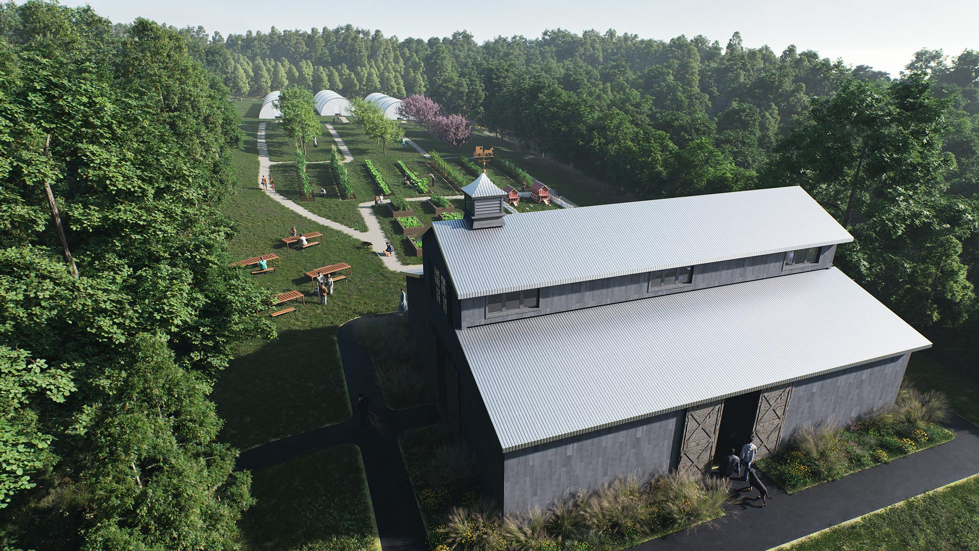 The on-campus farm will provide continued learning and employment opportunities where residents will grow and harvest the same fruits and vegetables that will be served in the Dining Hall. Additionally, we hope to host a few farm animals including dogs and pigs, which will provide the residents something to care for and bring additional purpose to their daily lives.